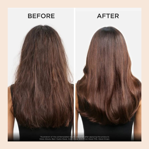 For best results, pair with the full Gloss Absolu routine: cleanse with Bain Hydra-Glaze shampoo, nourish with Insta Glaze conditioner, and finish with Glaze Drops for the ultimate glossy touch.