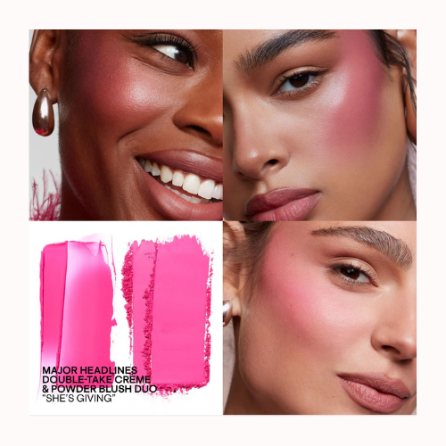 PATRICK TA Major Headlines Double-Take Crème & Powder Blush Duo is the ultimate blush that combines the best of both worlds—a cream and powder formula, offering you the flexibility to create a variety of looks. This innovative duo delivers a radiant, long-wearing flush of color that’s buildable to your desired intensity. The cream formula effortlessly glides onto the skin, creating a smooth, seamless finish, while the powder formula helps set and enhance the color, providing an added dimension to your cheeks.